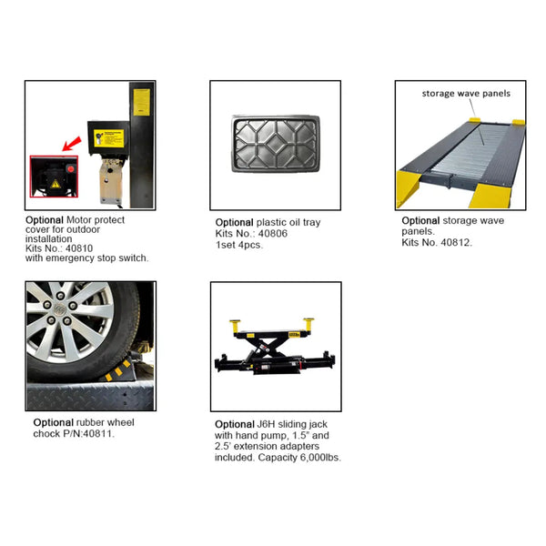 • Lifting capacity: 9,000 lbs, max. car weight:6,000 lbs.