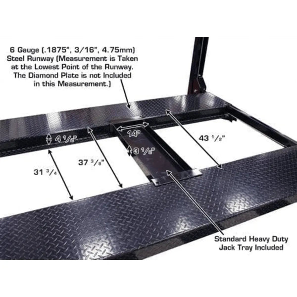 The Atlas PRO8000EXT doesn't just impress with its lifting capabilities; it's also engineered for ease of use and durability. Features such as the 37-inch approach ramp facilitate smooth vehicle loading, while the runway specifications—including a width of 21 1/4 inches with rails and a length of 165 3/4 inches—ensure that vehicles of various sizes can be securely accommodated. With width options between runways and runway rails designed to fit a broad range of vehicles, alongside a maximum wheel base capacity of 153 1/2 inches, this lift is as adaptable as it is robust.