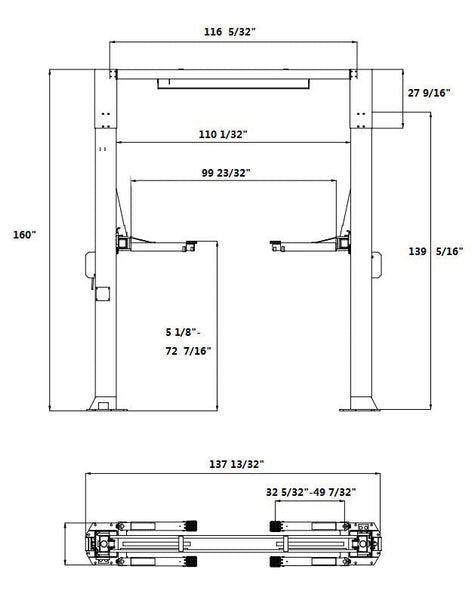 Drive Through Width (Carriage to Carriage) 99 23/32" 109"