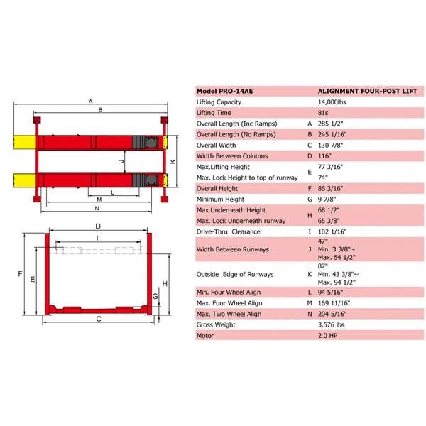 The AMGO PRO-14AE 14,000 lb 4 post car lift is a professional-grade alignment lift engineered for precision, safety, and long-lasting performance. Built with extended-length platforms, this 4 post vehicle lift accommodates a wide range of vehicles—from passenger cars to larger trucks—making it a versatile choice for busy shops.