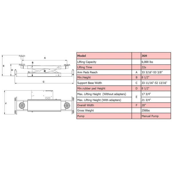 Features AMGO patent floating rolling technology, the low profile design AMGO J6H is equipped with hand ump. With a 6000lbs capacity, its new improved structure enhances the work reliability and ensures convenient operation, making it your ideal jack companion whether on the floor or on a lift.