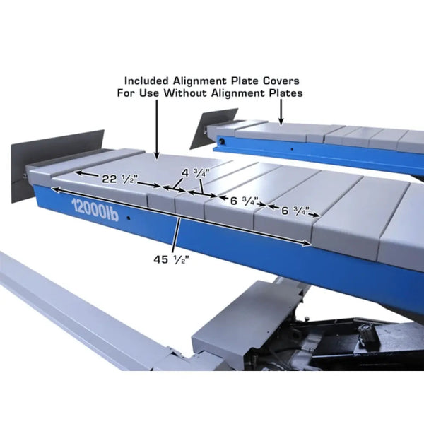 The Atlas® 12ASL 12,000 lb. scissor alignment lift has a lifting height of over seven feet so that it may be floor mounted or recessed in the floor for flush mounting. The full frame under the scissor lift provides for maximum stability.