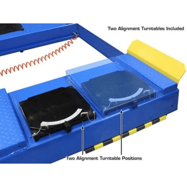 Includes turntables, built-in slip plates, jack rails for optional rolling jacks (like the Atlas® RJ8000BK), and a semi-enclosed airline routing system to prevent floor clutter.